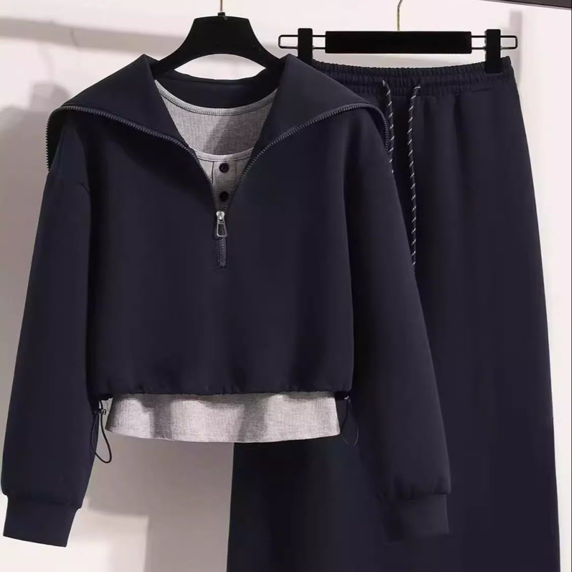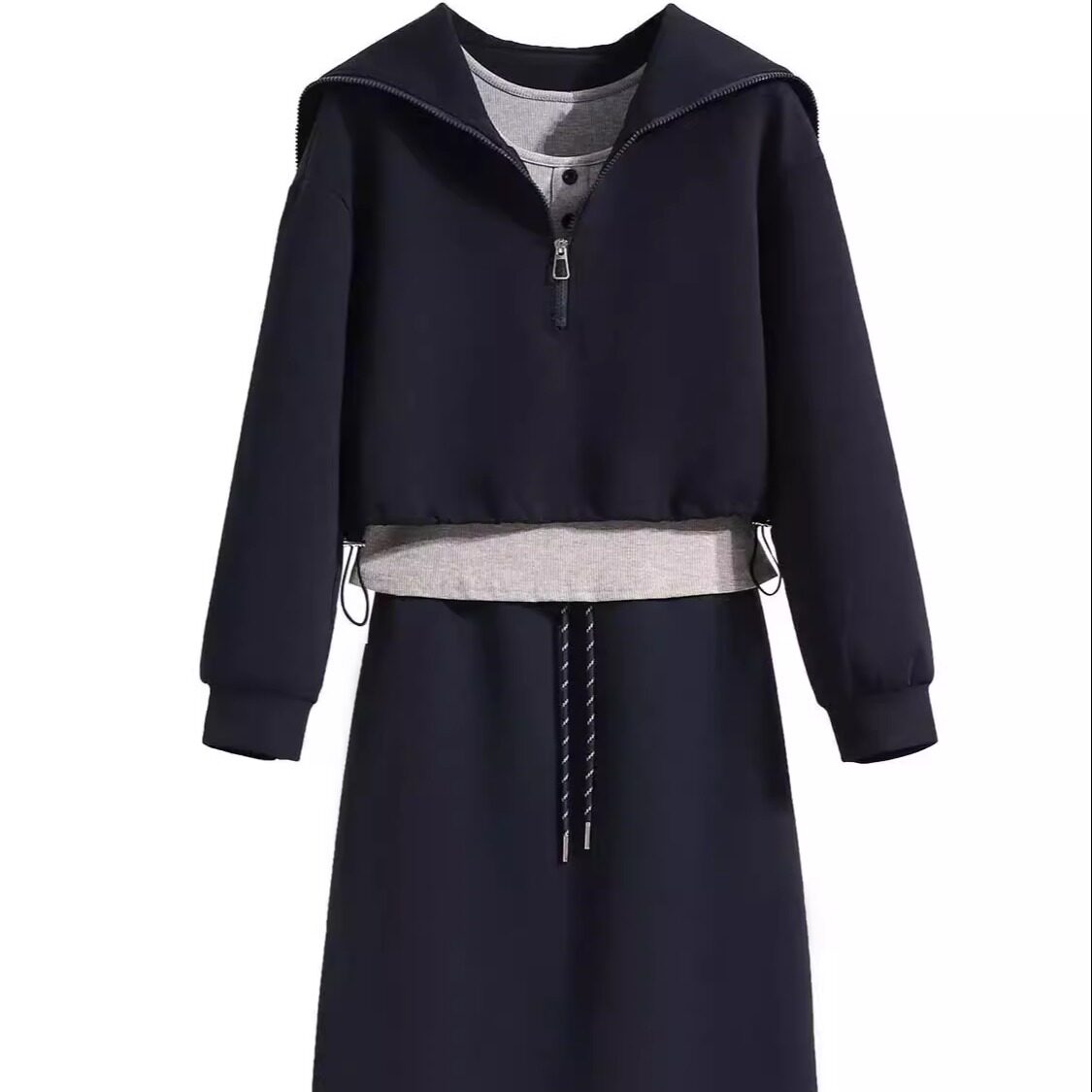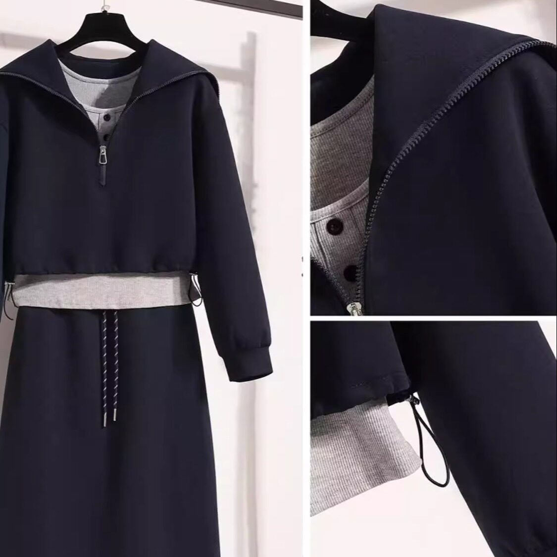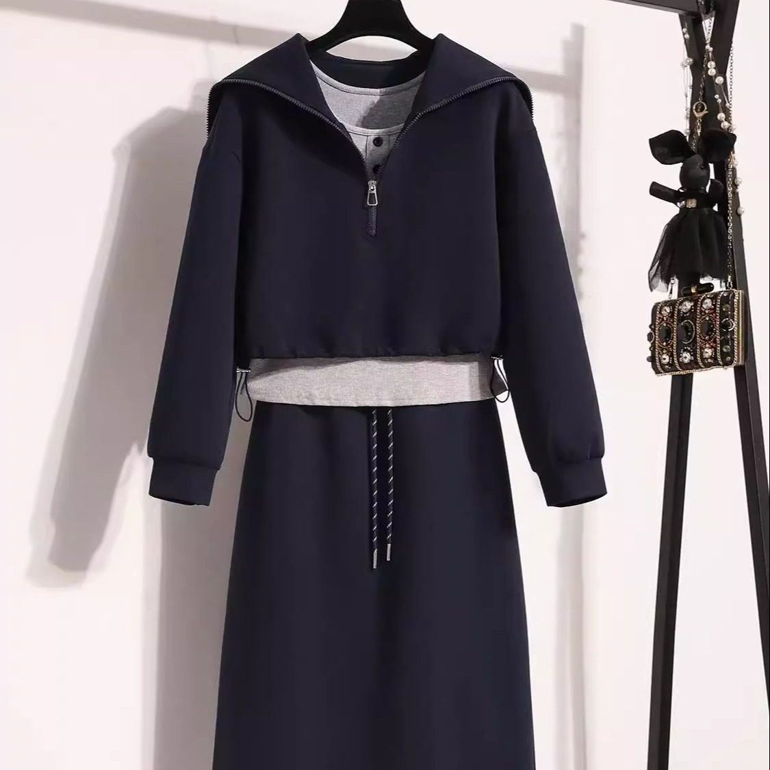 • 搭配一整套胖mm梨型显瘦学院风卫衣半身裙三件套装 大码 时尚 秋季 裙