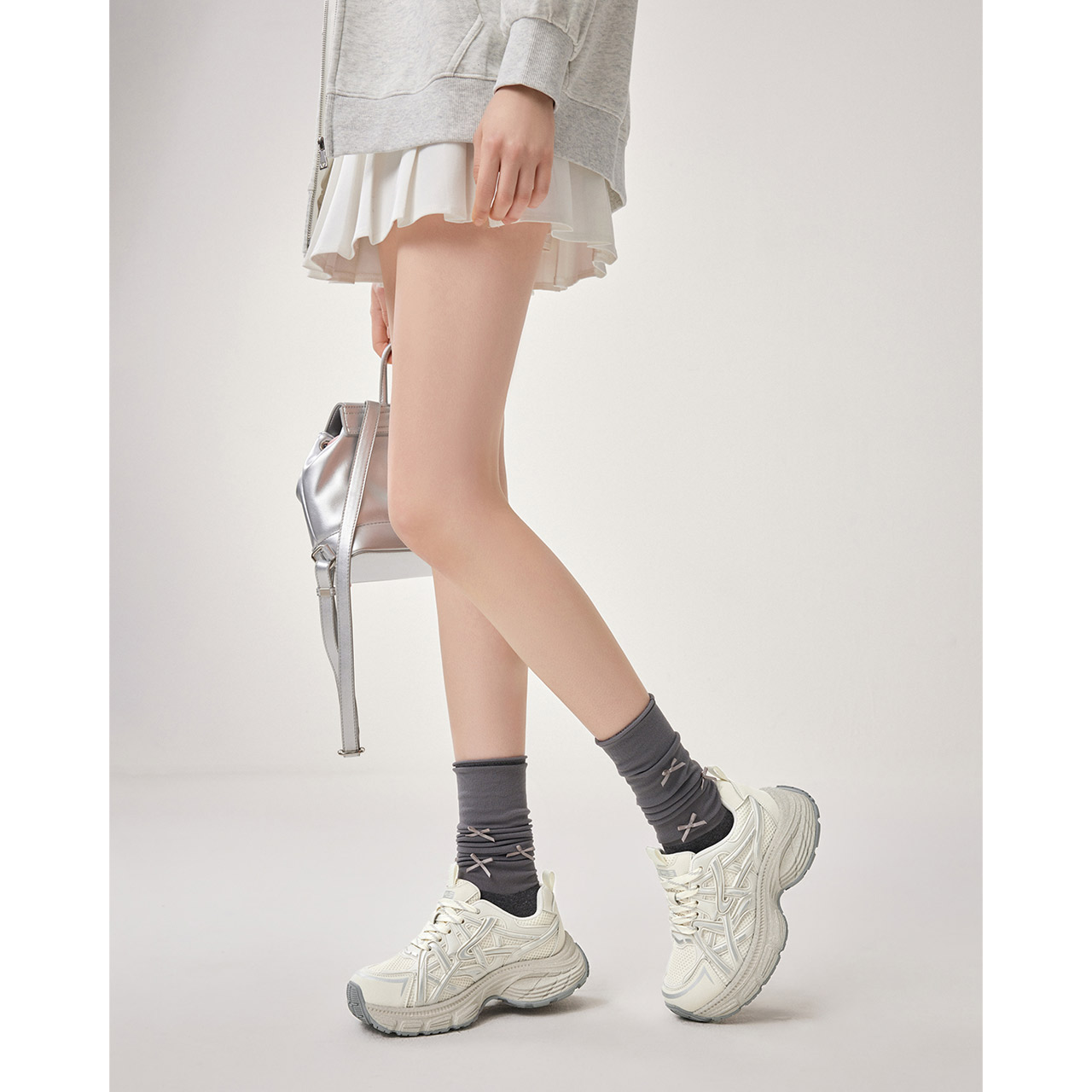 时尚 子 女2025冬季 安踏蝶翼 新款 运动鞋 厚底增高银色休闲鞋 老爹鞋