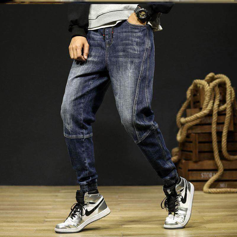 • 个性 裤 潮牌牛仔裤 子小脚男裤 哈伦复古休闲长裤 男宽松大码 弹力男士
